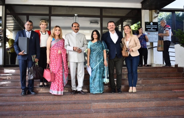 Hon'ble Minister of State for Textiles, Shri Ajay Tamta visited Macedonia from 6-8 May 2018. He had bilateral discussions with the Economy Minister Mr Kreshnik Bekteshi and met senior representatives of the Textiles Cluster as well as the Balkan India Business Association. He also engaged with the Indian diaspora and visited textile & garment factories and agri-farms.
